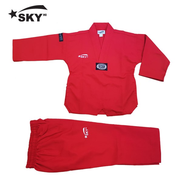 스카이 칼라 골지도복 [빨강] > 도복(V넥)